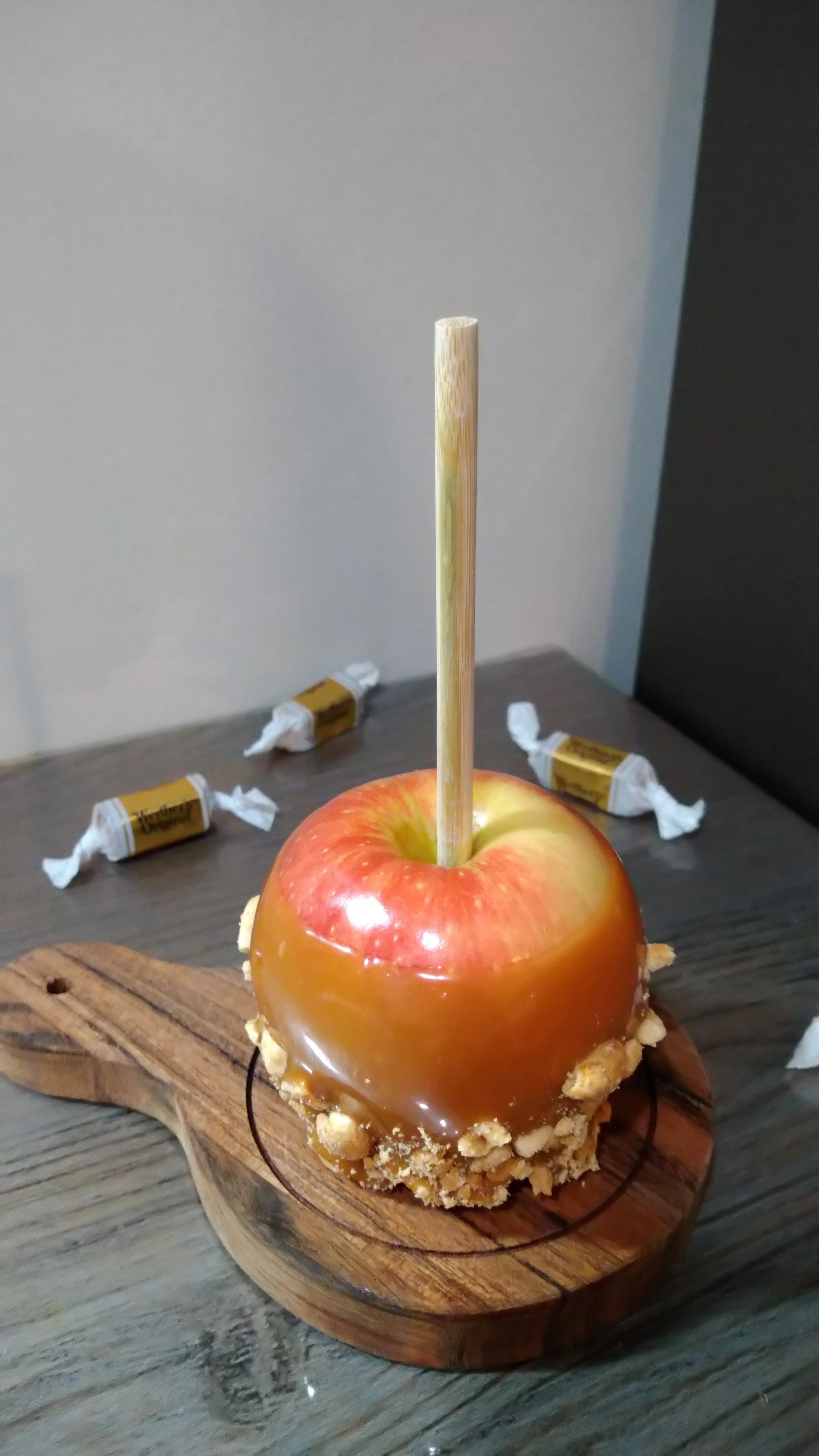 Clean apples with warm water and dry with paper towel. Dip the apple in the melted caramel.