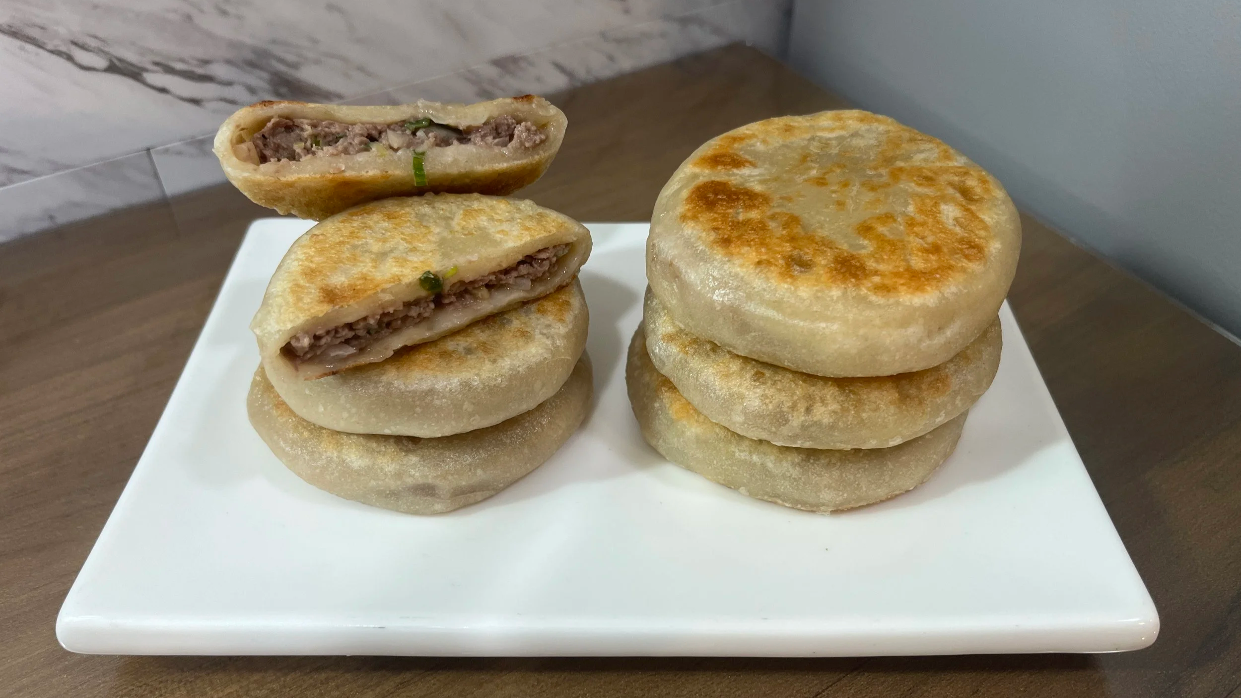 Xiang Bing (้ฆ็ ่้ฅผ), sometimes called Chinese meat pie or pan-fried meat bun, is a beloved Northern Chinese dish made by stuffing seasoned ground meat into a soft wheat-based dough, then pan-frying it until golden and crisp on the outside, juicy on the inside.