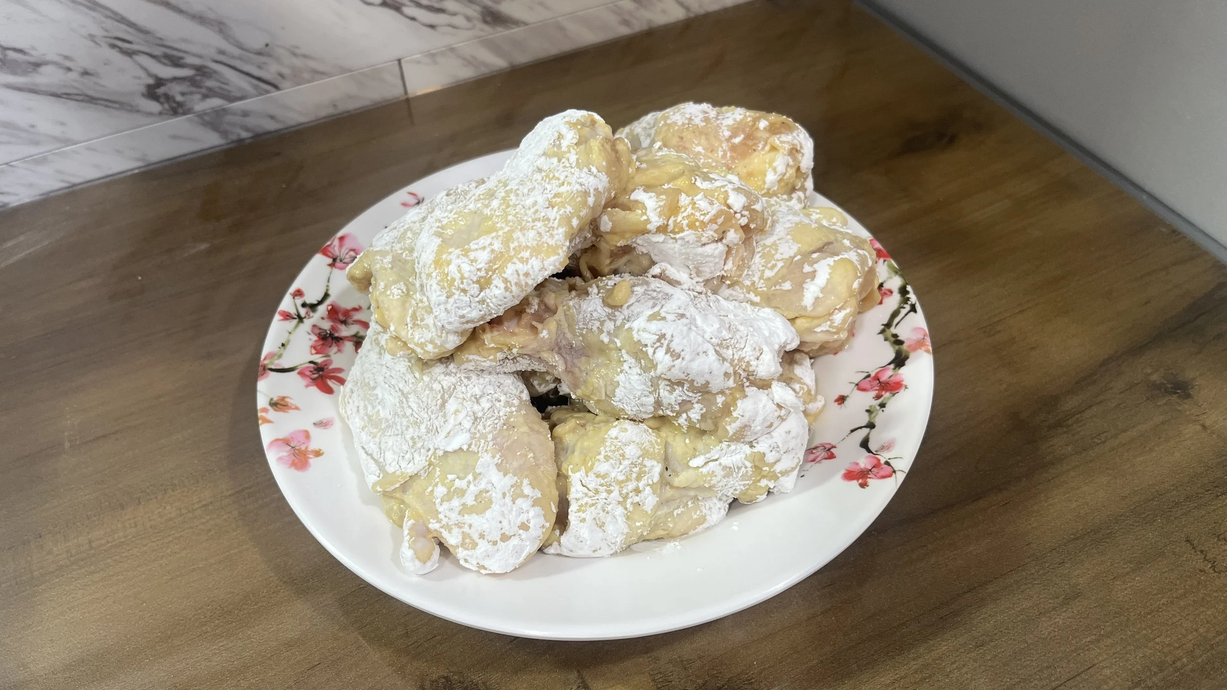 Marinate for 30 Min. Coat wings with more cornstarch.