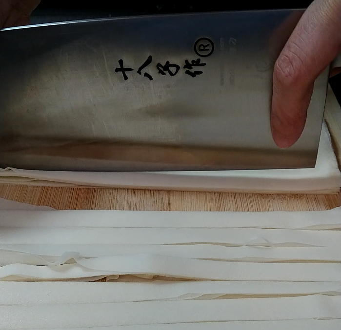 Cut spring roll wrappers in strips. Loosen to separate the wrappers.