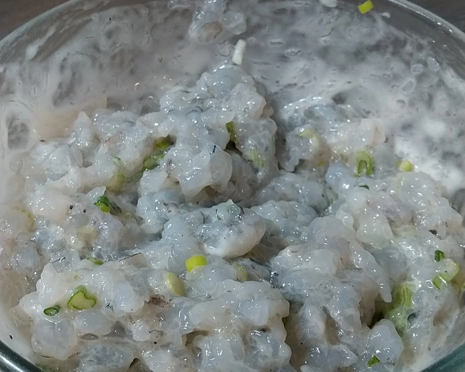 Make the shrimp paste. Minch shrimp using a knife or using a food processor. Season the shrimp paste to your personal preferences.