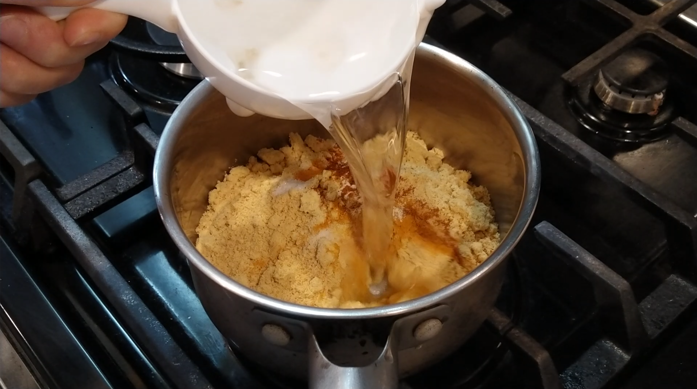 Add water, mustard powder and seasoning to a pan. Cook on low/medium heat until thickened. Approx. 10 - 15 Min