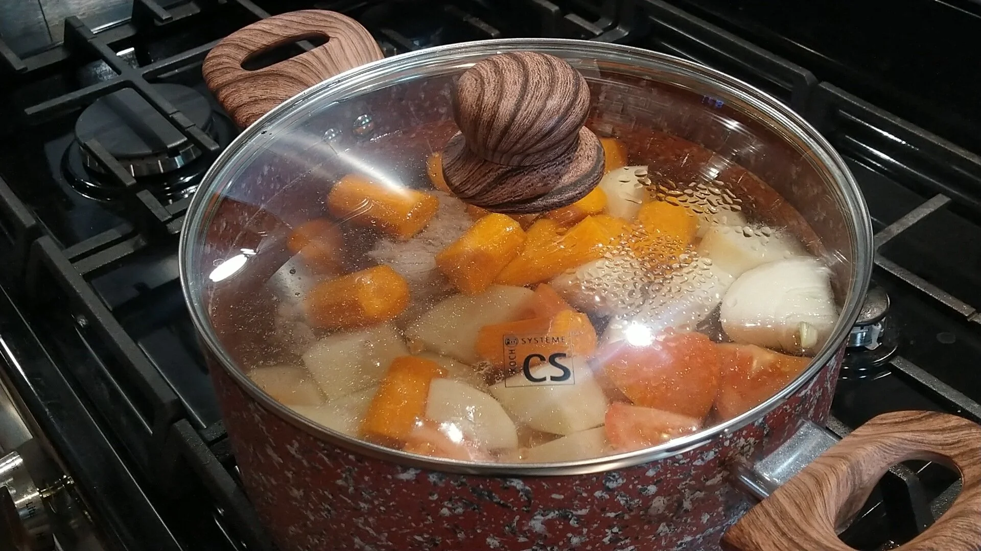 Add the prepared vegetables, blanched oxtail and water to a pot and bring it to a boil. Once boiling turn down the heat to let it simmer. Let the soup simmer at least 2½ - 3 hours.