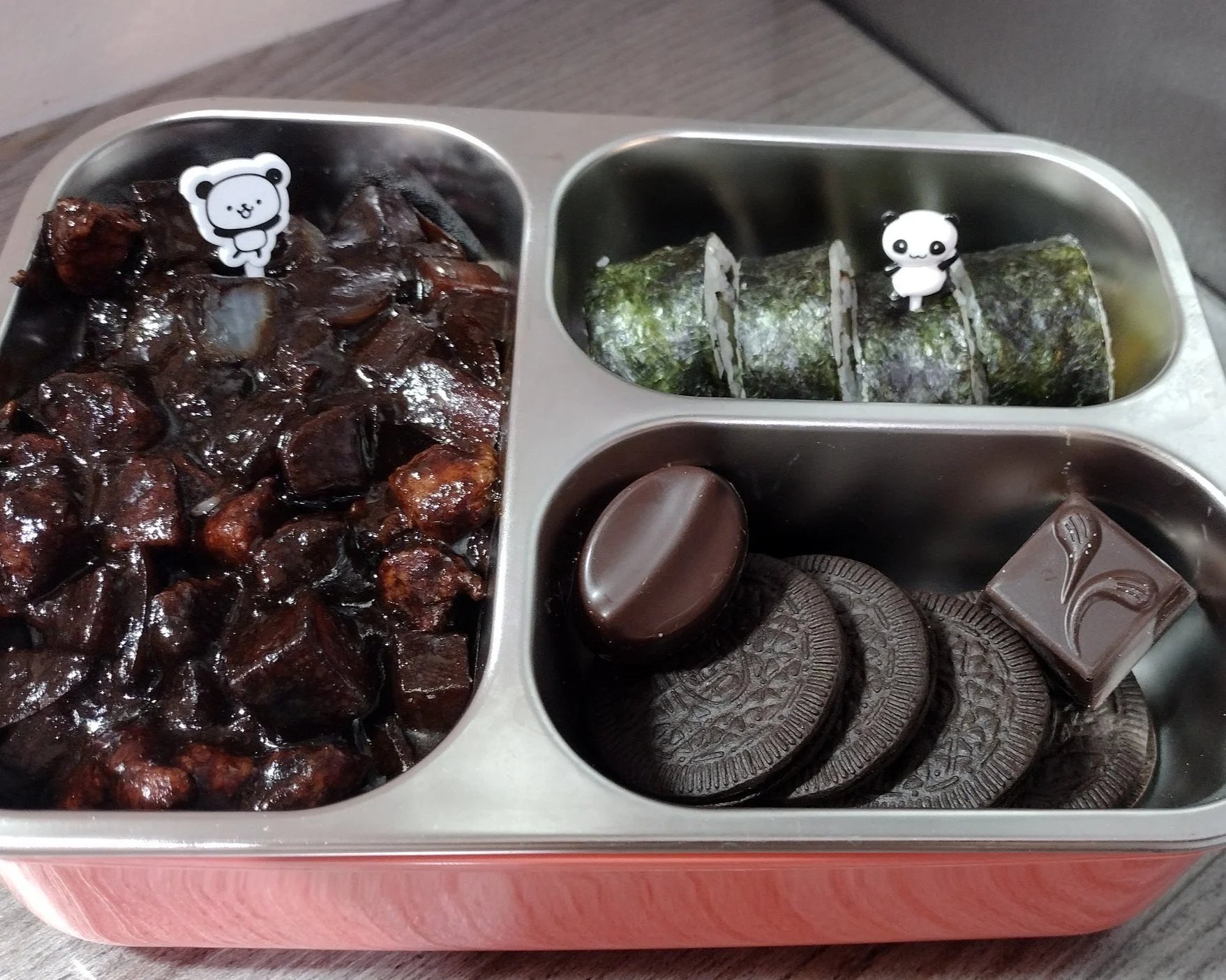 In our black bento we also got sushi, chocolate and oreo cookies.
