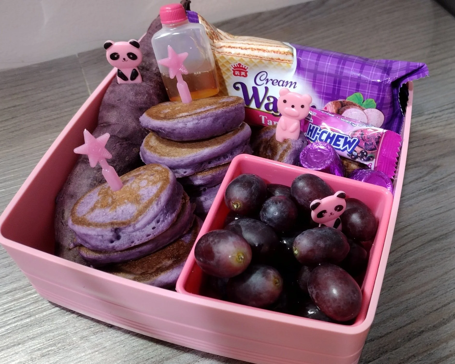 In Our Purple bento we also got grapes, purple sweet potato, rolo chocolate and taro wafer cookies.